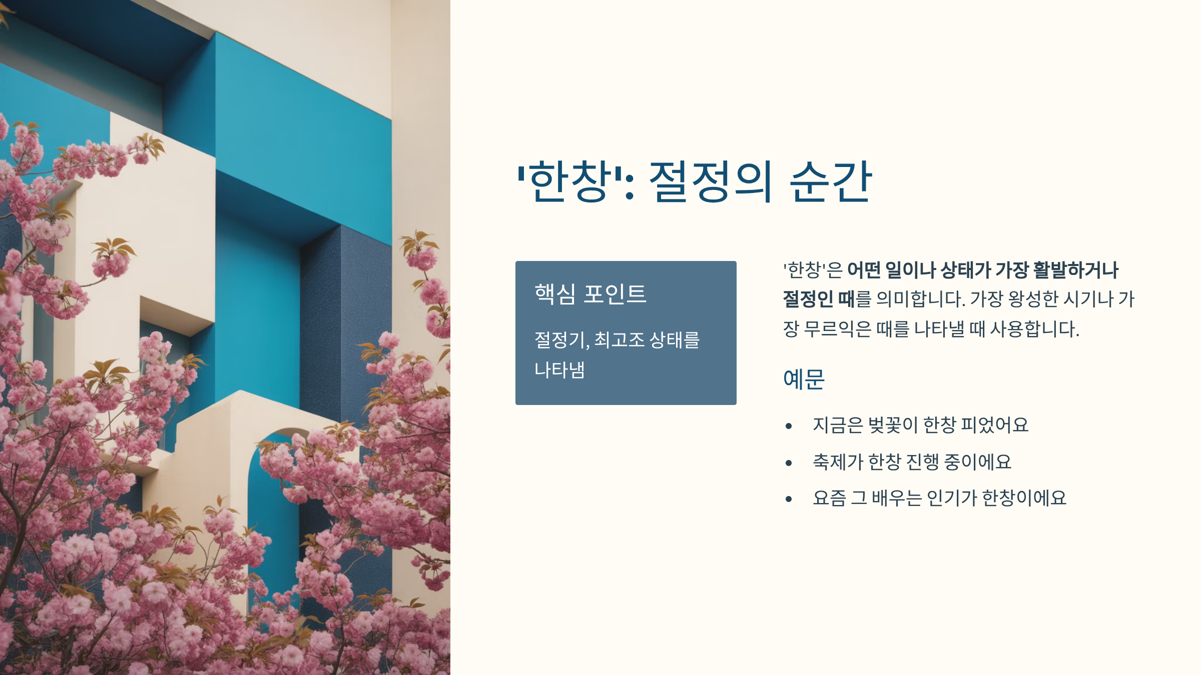 2️⃣ ‘한창’의 뜻과 쓰임