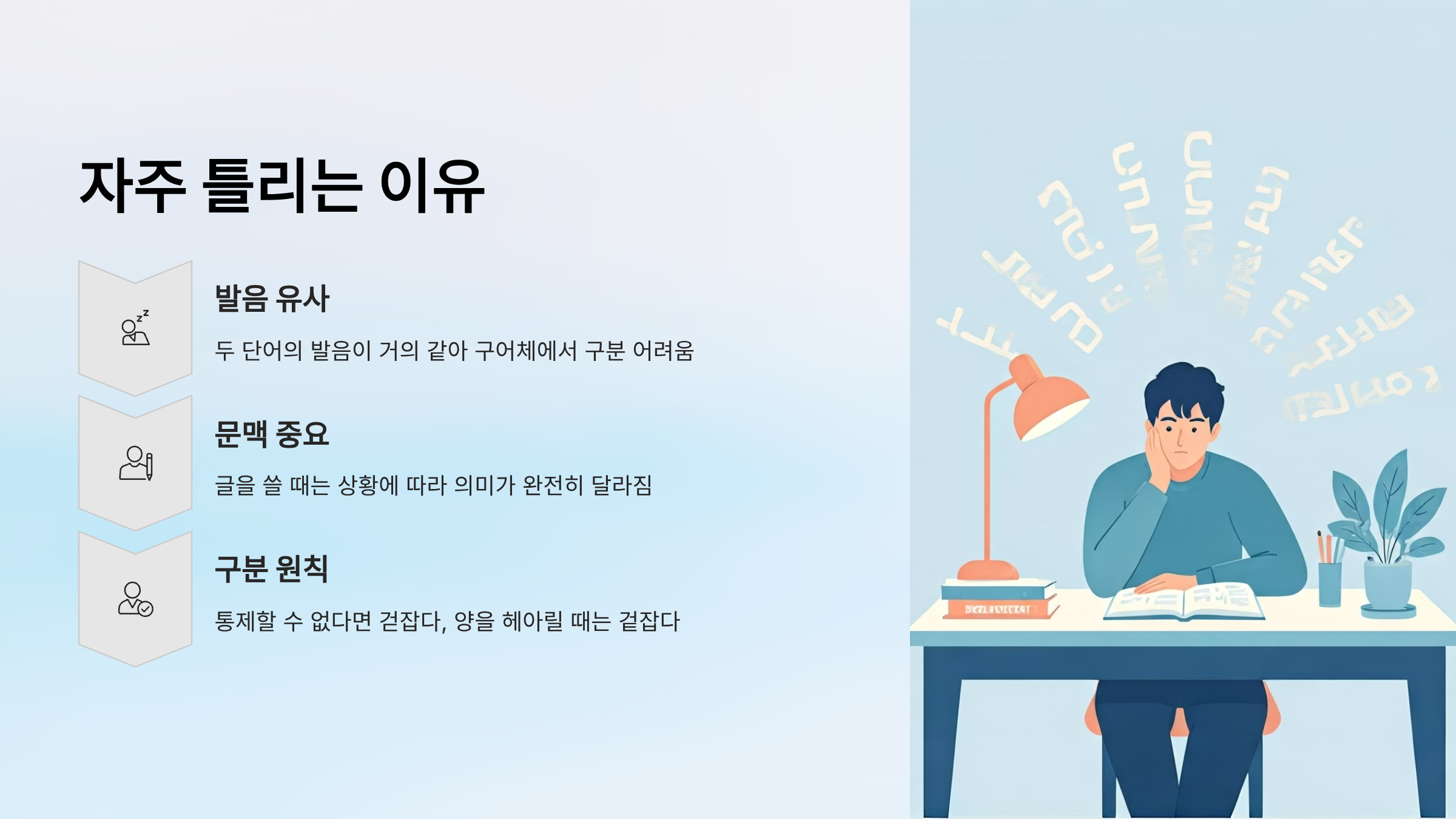 오늘 배운 구분법만 기억해도 글의 품격이 한층 높아질 거예요.