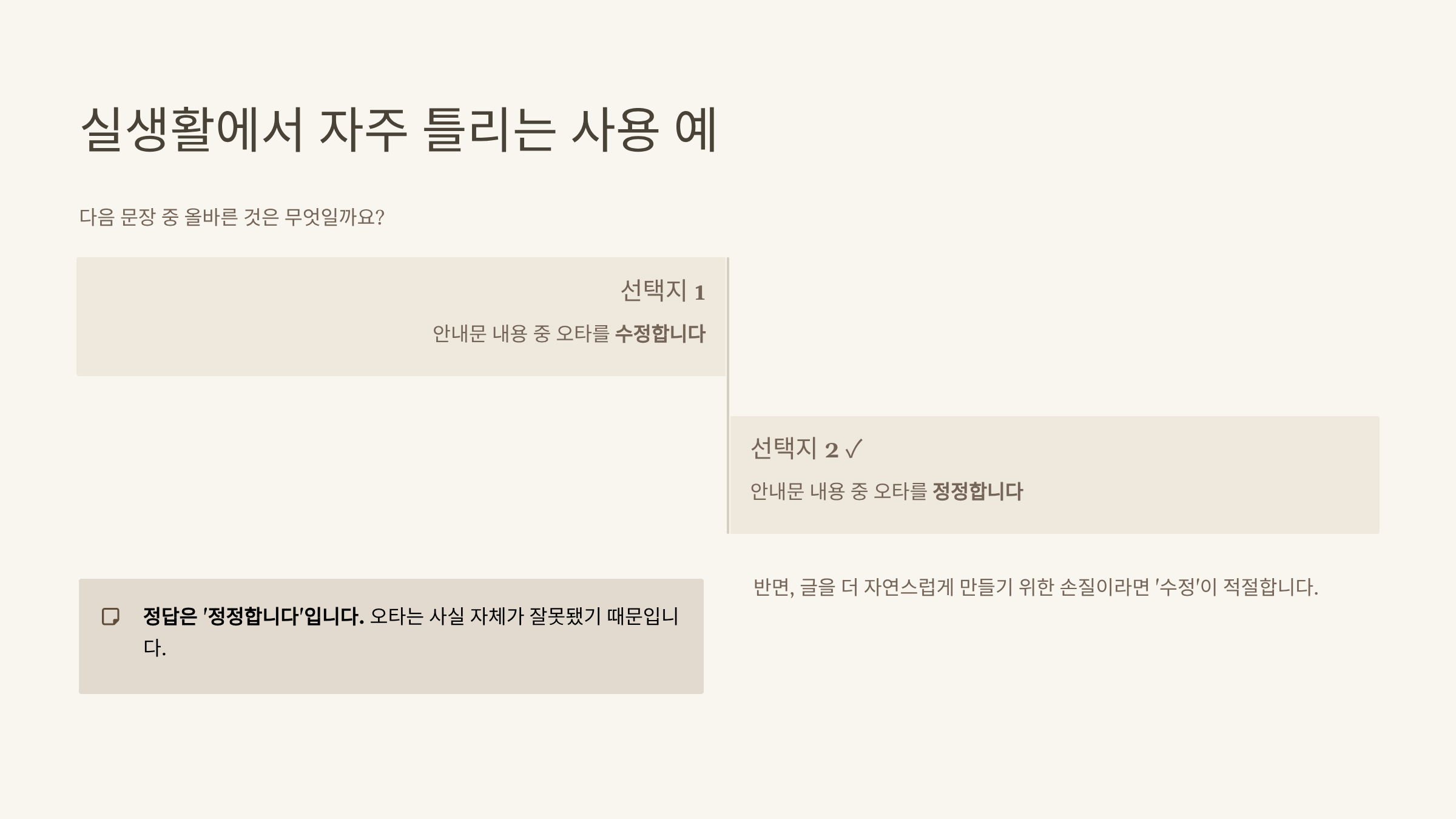 1. ‘수정’은 내용을 다듬거나 고치는 행위