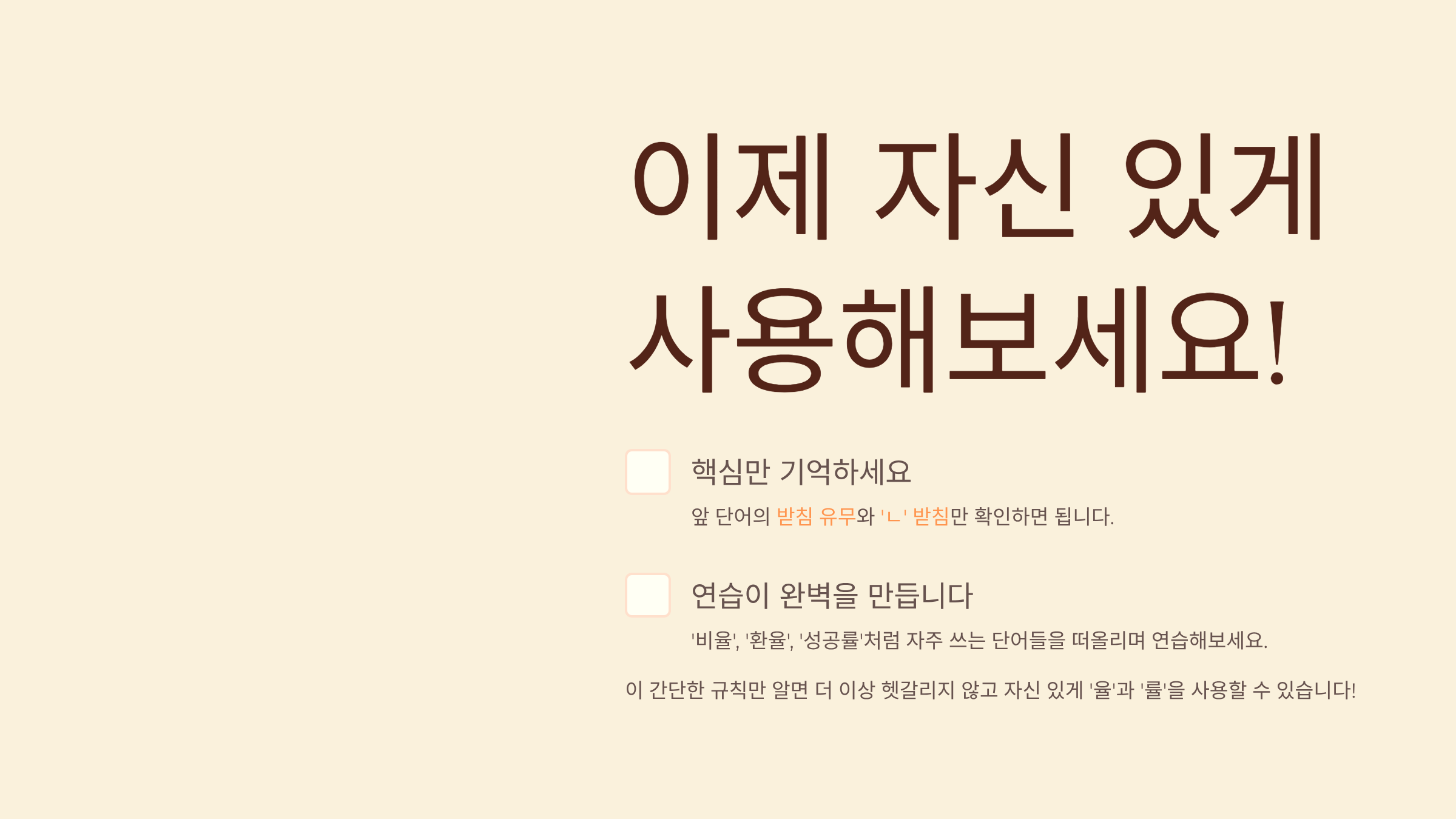 4. 이제 '율'과 '률', 자신 있게 사용해보세요!