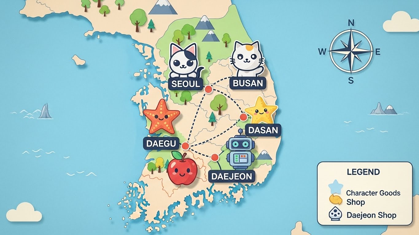 꿈씨패밀리 굿즈샵은 전국 주요 도시에 오프라인 매장을 운영하고 있어요. 2025년 기준으로 다음 지역에서 매장을 만나볼 수 있어요.